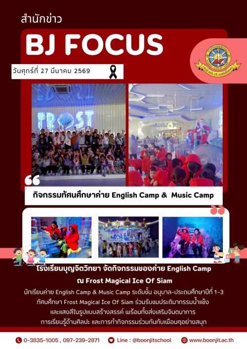 วันศุกร์ที่ 27 มีนาคม 2569 โรงเรียนบุญจิตวิทยา จัดกิจกรรมของค่าย English Camp ณ Frost Magical Ice Of Siam นักเรียนค่าย English Camp & Music Camp ระดับขั้น