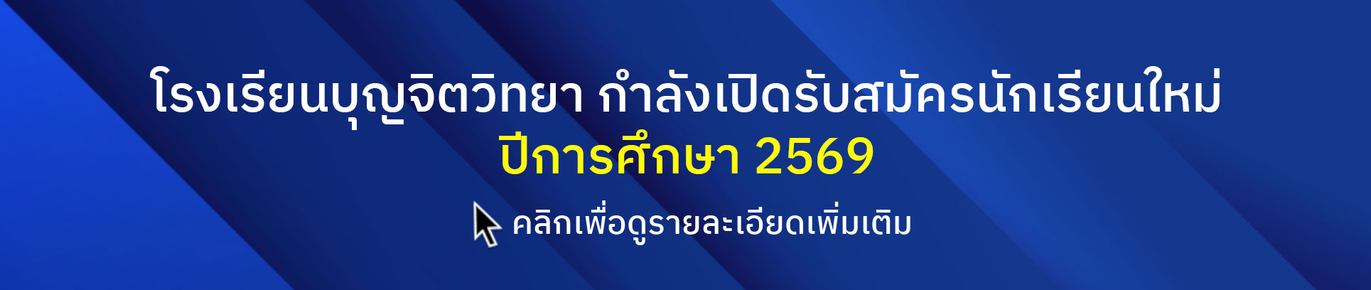 วันพุธที่ 1 เมษายน 2569 โรงเรียนบุญจิตวิทยา เปิดการเรียนปรับพื้นฐานนักเรียน 2569 ณ อาคาร 50 ปี และอาคารเลิศปัญญา เปิดเรียนปรับพื้นฐานหลักสูตร BIEP และ MSEP ระดับชั้นอนุบาล 1 - ระดับชั้นประถมศึกษาปีที่ 2