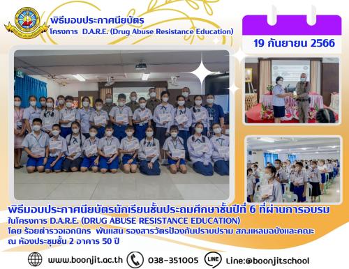 วันศุกร์ที่ 19 กันยายน 2566 ร.ต.อ.นิกร พันแสน รองสารวัตรป้องกันปราบปราม สภ.แหลมฉบัง และคณะ ได้ให้เกียรติเป็นประธานการมอบประกาศนียบัตรให้กับนักเรียน ที่จบการอบรม