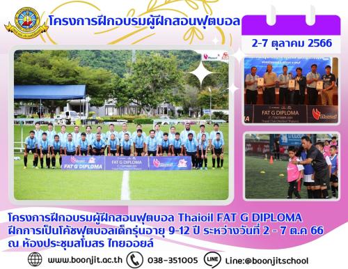 วันที่ 2-7 ตุลาคม 2566 โครงการฝึกอบรมผู้ฝึกสอนฟุตบอล Thaioil FAT G DIPLOMA ฝึกการเป็นโค้ชฟุตบอลเด็กรุ่นอายุ 9-12 ปี