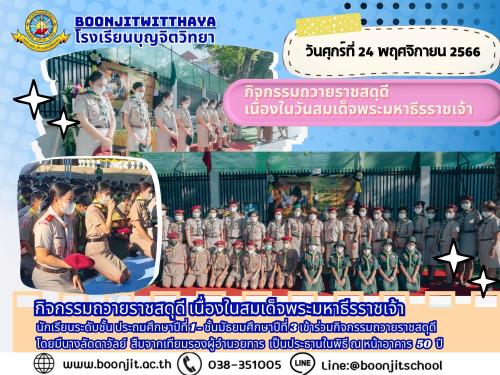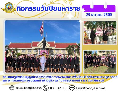 วันจันทร์ที่ 23 ตุลาคม 2566 " วันปิยมหาราช " ตัวแทนครูโรงเรียนบุญจิตวิทยาร่วมพิธีถวายพวงมาลา ณ ที่ว่าการอำเภอศรีราชา จังหวัดชลบุรี