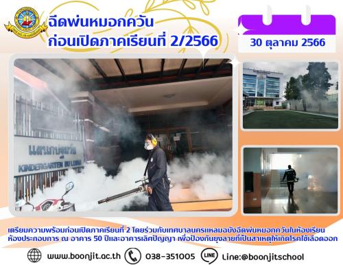 โดยร่วมกับเทศบาลนครแหลมฉบังฉีดพ่นหมอกควันในห้องเรียน ห้องประกอบการ