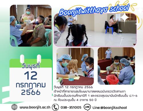 วันพุธที่ 12 กรกฎาคม 2566 เจ้าหน้าที่สาธารณสุขโรงพยาบาลแหลมฉบังตรวจวัดสายตา ตรวจสุขอนามัยนักเรียน