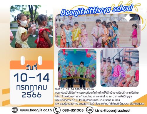 แผนกปฐมวัยได้จัดกิจกรรมหนูน้อยเด็กไทยโดยให้เด็กเข้าฐานเรียนรู้ความเป็นไทย ได้แก่ รำวงย้อนยุค การทำขนมไทย การละเล่นไทย