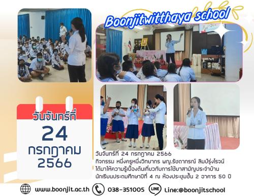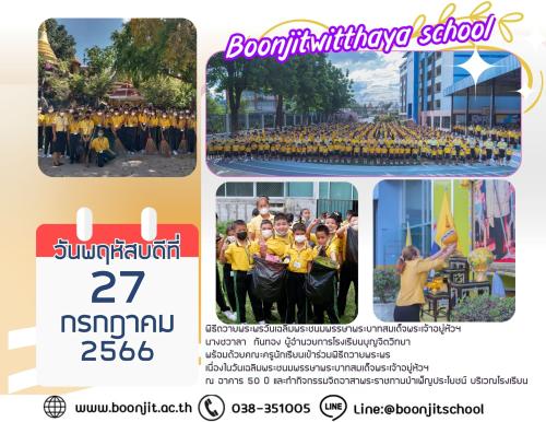 วันอังคารที่ 25 กรกฎาคม 2566 โรงเรียนบุญจิตวิทยา จัดกิจกรรมวันเข้าพรรษา นักเรียนระดับชั้นอนุบาลปีที่ 1 - ชั้นมัธยมศึกษาปีที่ 3