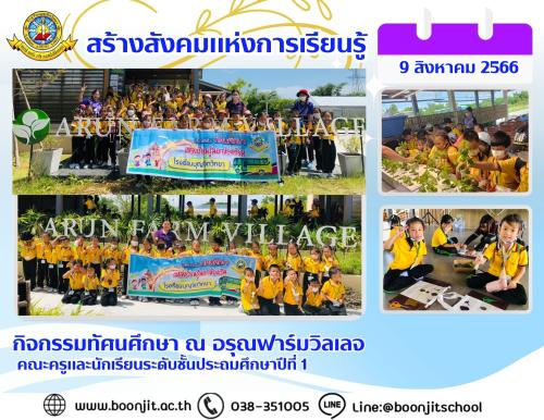 วันพุธที่ 9 สิงหาคม พ.ศ. 2566 ณ อรุณฟาร์มวิลเลจ นักเรียนระดับชั้นประถมศึกษาปีที่ 1