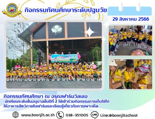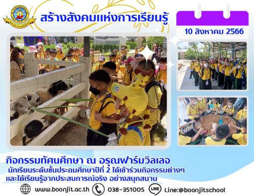 วันพุธที่ 10 สิงหาคม พ.ศ. 2566 ณ อรุณฟาร์มวิลเลจ นักเรียนระดับชั้นประถมศึกษาปีที่ 2