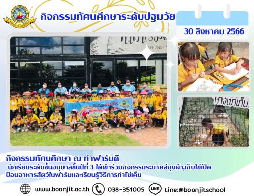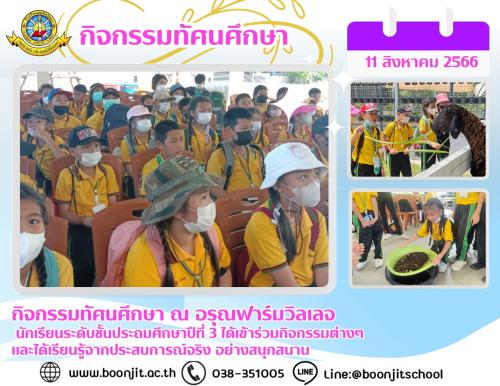 วันพุธที่ 11 สิงหาคม พ.ศ. 2566 ณ อรุณฟาร์มวิลเลจ นักเรียนระดับชั้นประถมศึกษาปีที่ 3