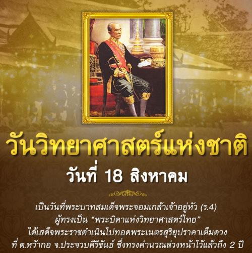 วันที่ 18 สิงหาคม ของทุกปี กำหนดขึ้นเพื่อเป็นการเฉลิมพระเกียรติพระบาทสมเด็จพระจอมเกล้าเจ้าอยู่หัว รัชกาลที่ 4 พระบิดาแห่งวิทยาศาสตร์ไทย
