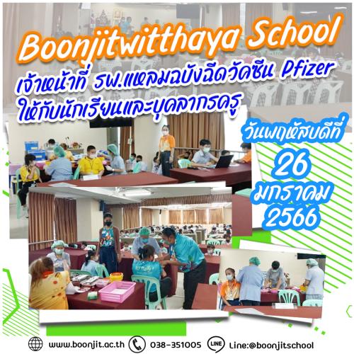 วันพฤหัสบดีที่ 26 มกราคม 2566 เจ้าหน้าที่จากโรงพยาบาลแหลมฉบัง ฉีดวัคซีน Pfizer
