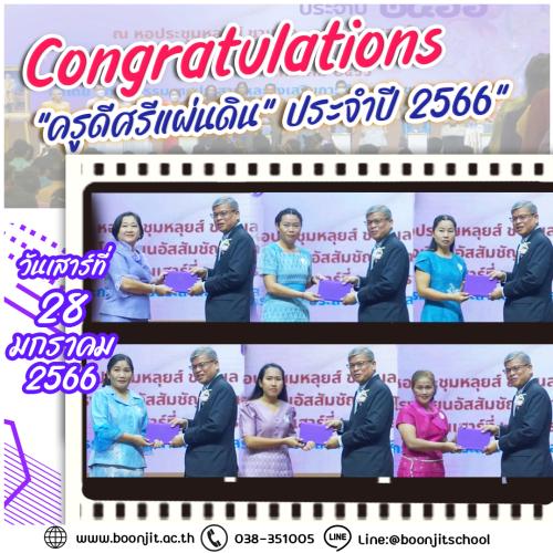 วันเสาร์ที่ 28 มกราคม 2566 ขอเเสดงความยินดีกับครูที่ได้รับรางวัล“ ครูดีศรีแผ่นดิน ประจำปี 2566 ”ณ หอประชุมวัชรสมโภช โรงเรียนอัสสัมชัญศรีราชา อำเภอศรีราชา จังหวัดชลบุรี