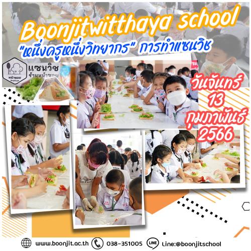 วันจันทร์ที่ 13 กุมภาพันธ์ 2566 กิจกรรมหนึ่งครูหนึ่งวิทยากรการทำแซนวิช
