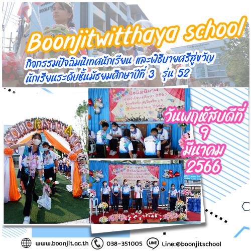 วันพฤหัสบดีที่ 9 มีนาคม 2566 กิจกรรมปัจฉิมนิเทศนักเรียนระดับชั้นมัธยมศึกษาปีที่ 3 รุ่น 52