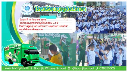 วันศุกร์ที่ 16 กันยายน 2565 โรงเรียนบุญจิตวิทยา นักเรียนชั้นประถมศึกษาปีที่1-6 ได้รับความรู้ทางโภชนาการส่งเสริมการเล่นกีฬา