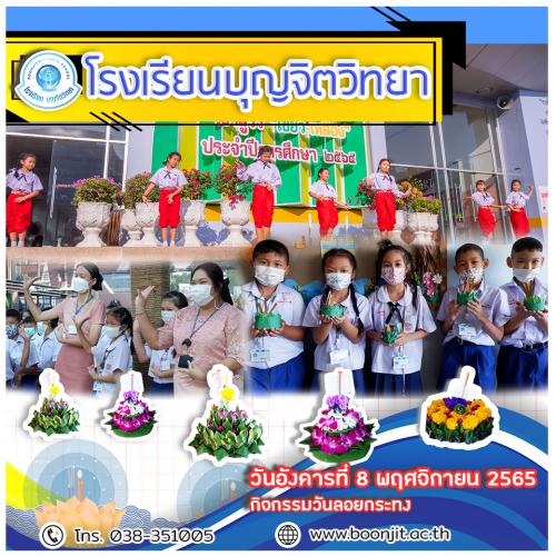 วันอังคารที่ 8 พฤศจิกายน 2565 โรงเรียนบุญจิตวิทยาจัดกิจกรรมเนื่องในวันลอยกระทง