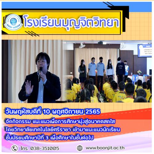 แนะแนวเพื่อการศึกษามุ่งสู่อนาคตสดใส โดยวิทยาลัยเทคโนโลยีศรีราชา เข้ามาแนะแนวนักเรียนชั้นมัธยมศึกษาปีที่ 3 เพื่อศึกษาในชั้นต่อไป