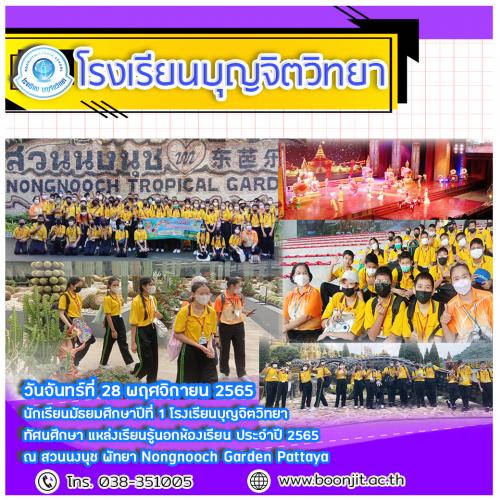 โรงเรียนบุญจิตวิทยา วันจันทร์ที่ 28 พฤศจิกายน 2565 จัดทัศนศึกษานอกสถานที่ นักเรียนมัธยมศึกษาปีที่ 1 สวนนงนุช พัทยา Nongnooch Garden Pattaya