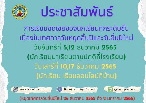 แจ้งหยุดเรียนเนื่องในวันส่งท้ายปีเก่าต้อนรับปีใหม่และกำหนดการเรียนชดเชย