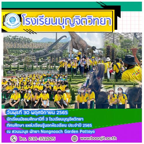 โรงเรียนบุญจิตวิทยา วันพุธที่ 30 พฤศจิกายน 2565 จัดทัศนศึกษานอกสถานที่ นักเรียนมัธยมศึกษาปีที่ 3 สวนนงนุช พัทยา Nongnooch Garden Pattaya