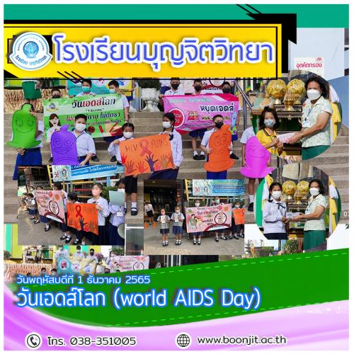 วันที่ 1 ธันวาคม ของทุกปี เป็นวันเอดส์โลก (world AIDS Day) ซึ่งทางโรงเรียนบุญจิตวิทยา ได้ร่วมรณรงค์สร้างความเข้าใจที่ถูกต้องเกี่ยวกับเอดส์