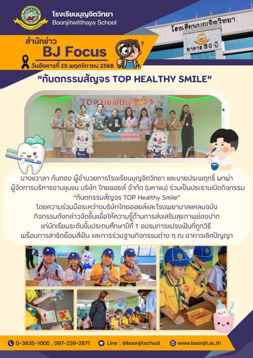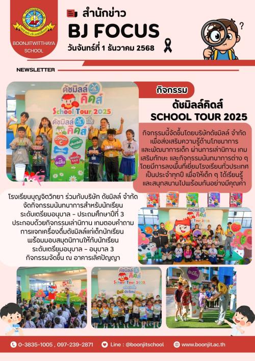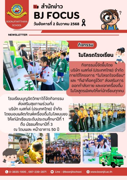วันอังคารที่ 2 ธันวาคม 2568 โรงเรียนบุญจิตวิทยาได้จัดกิจกรรมส่งเสริมสุขภาพร่วมกับ บริษัท เนสท์เล่ (ประเทศไทย) จำกัด โดยมอบผลิตภัณฑ์
