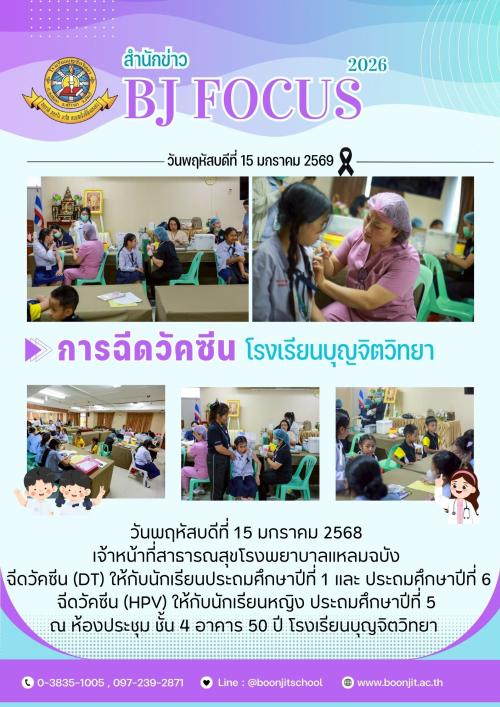 วันพฤหัสบดีที่ 15 มกราคม 2568 เจ้าหน้าที่สาธารณสุขโรงพยาบาลแหลมฉบัง ฉีดวัคซีน (DT) ให้กับนักเรียนประถมศึกษาปีที่ 1 และ