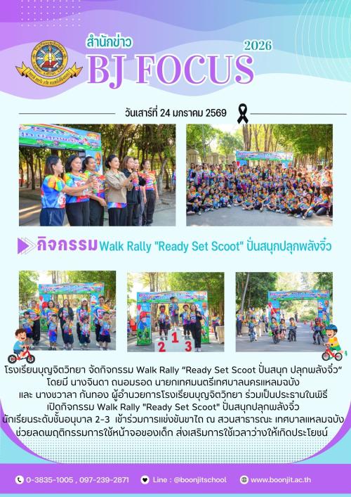 วันเสาร์ที่ 24 มกราคม 2569 โรงเรียนบุญจิตวิทยา จัดกิจกรรม Walk Rally “Ready Set Scoot ปั่นสนุก ปลุกพลังจิ๋ว”โดยมี นางจินดา ถนอมรอด นายกเทศมนตรีเทศบาลนครแหลมฉบังและ