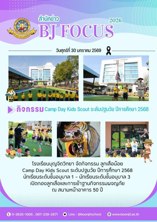 วันศุกร์ที่ 30 มกราคม 2569 โรงเรียนบุญจิตวิทยา จัดกิจกรรม ลูกเสือน้อย Camp Day Kids Scout ระดับปฐมวัย ปีการศึกษา 2568