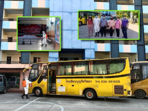 วันอังคารที่ 12 มกราคม 64 โรงเรียนบุญจิตวิทยาร่วมกับเจ้าหน้าที่สาธารณสุขเทศบาลนครแหลมฉบัง เข้ามาฉีดพ่นยาฆ่าเชื้อ ป้องกันการติดเชื้อโรคไวรัสโคโรนา 2019 (COVID-19)