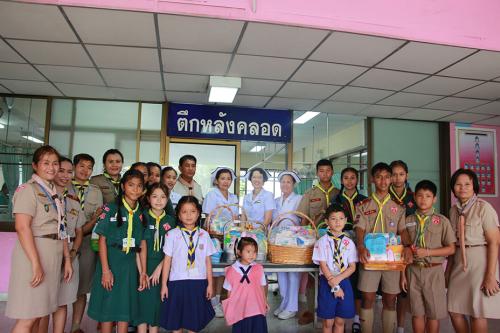 9 สิงหาคม 2561 โรงเรียนบุญจิตวิทยา ร่วมกับ สมาคมครูผู้ปกครองนักเรียนและศิษย์เก่า คณะผู้บริหาร ครูและนักเรียน นำกระเช้าของขวัญไปมอบให้แก่แม่แรกคลอด