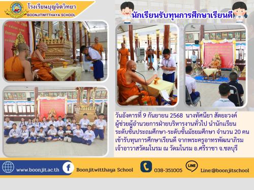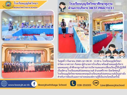 วันพุธที่ 3 กันยายน 2568 เวลา 08.30 - 12.00 น. โรงเรียนบุญจิตวิทยา นำโดย นางชวาลา กันทอง ผู้อำนวยการโรงเรียน พร้อมด้วยคณะผู้บริหารและคณะครู