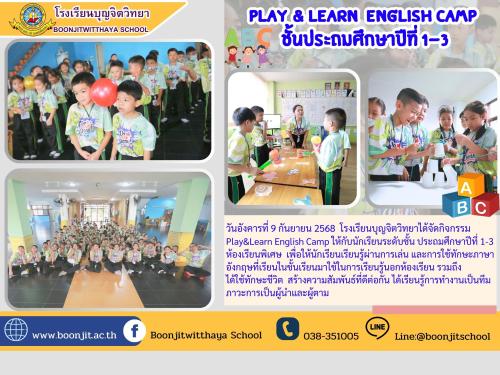 วันอังคารที่ 9 กันยายน 2568 โรงเรียนบุญจิตวิทยาได้จัดกิจกรรม Play&Learn English Camp ให้กับนักเรียนระดับชั้น ประถมศึกษาปีที่ 1-3 ห้องเรียนพิเศษ