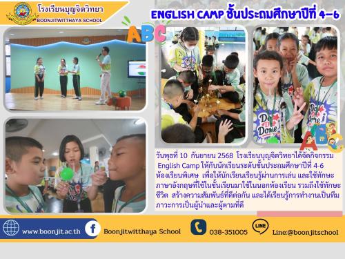 วันพุธที่ 10 กันยายน 2568 โรงเรียนบุญจิตวิทยาได้จัดกิจกรรม English Camp ให้กับนักเรียนระดับชั้นประถมศึกษาปีที่ 4-6 ห้องเรียนพิเศษ