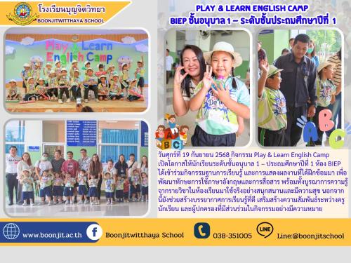วันศุกร์ที่ 19 กันยายน 2568 กิจกรรม Play & Learn English Camp เปิดโอกาสให้นักเรียนระดับชั้นอนุบาล 1 – ประถมศึกษาปีที่ 1 ห้อง BIEP