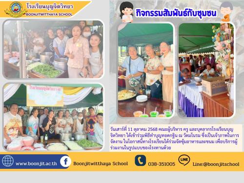 วันเสาร์ที่ 11 ตุลาคม 2568 คณะผู้บริหาร ครู และบุคลากรโรงเรียนบุญจิตวิทยา ได้เข้าร่วมพิธีทำบุญทอดกฐิน