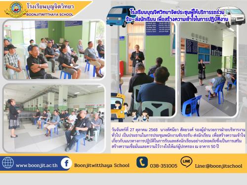 วันจันทร์ที่ 27 ตุลาคม 2568 นางทัศนียา สัตยวงศ์ รองผู้อำนวยการฝ่ายบริหารงานทั่วไป เป็นประธานในการประชุมพนักงานขับรถรับ-ส่งนักเรียน