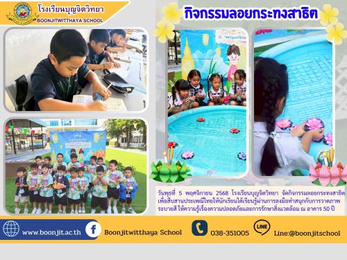 วันพุธที่ 5 พฤศจิกายน 2568 โรงเรียนบุญจิตวิทยา จัดกิจกรรมลอยกระทงสาธิต เพื่อสืบสานประเพณีไทยให้นักเรียนได้
