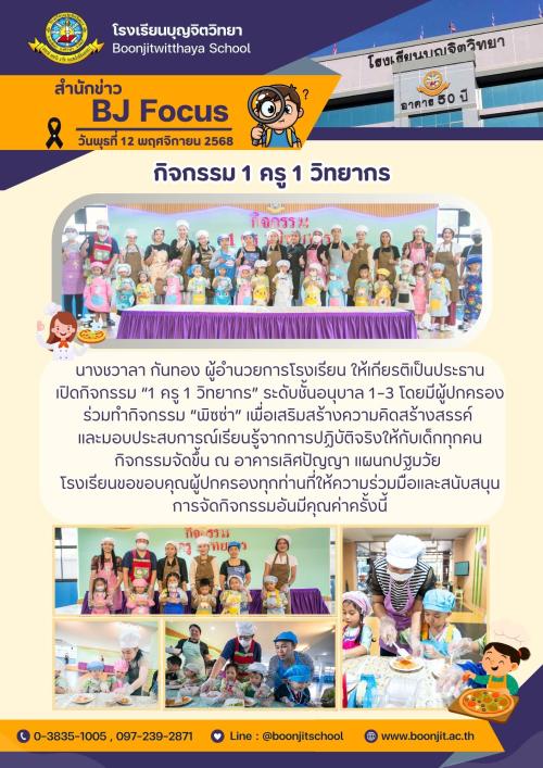 " โรงเรียนบุญจิตวิทยา เน้นการเรียนและกิจกรรมเป็นสำคัญควบคู่กันไป เพื่อให้นักเรียนมีทักษะและความรู้รอบด้าน "