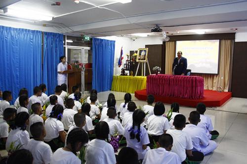 โรงเรียนบุญจิตวิทยา โดย ผอ.สนธยา ตุ๋นเจริญ จัดส่งคณะครูและ นักเรียน ร่วมจัดทำดอกไม้จันทร์ ในพิธีพระราชทานเพลิงพระบรมศพ รัชกาลที่ ๙