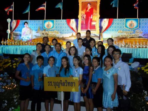 12 สิงหาคม 2559 โรงเรียนบุญจิตวิทยา โดย ผอ.สนธยา ตุ๋นเจริญ และคณะครูตัวแทนโรงเรียนบุญจิต เข้าร่วมพิธีถวายเครื่องราชสักการะ จุดเทียนชัยถวายพระพร