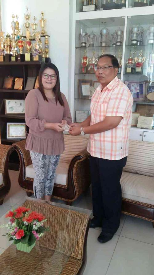 23 สิงหาคม 2559 ผู้ปกครอง ด.ช.ธนภัทร ผงสุข นักเรียนชั้นประถม 1/3 มอบเงินช่วยเหลือครอบครัว ด.ญ.ณัฐธิดา อ่างทอง โดย ผอ.สนธยา ตุ๋นเจริญ เป็นผู้รับและส่งมอบต่อ