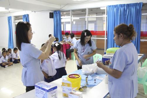 วันอังคารที่ 14 มิถุนายน 2559 โรงพยาบาลแหลมฉบัง ให้บริการฉีดวัคซีน (บาดทะยักและคอตีบ) นักเรียนโรงเรียนบุญจิตวิทยา ชั้น ประถมศึกษาปีที่ 1 และ ประถมศึกษาปีที่ 6