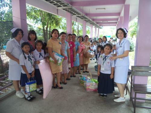 11 สิงหาคม 2558 คณะครูและนักเรียนนำกระเช้าของขวัญมอบให้แก่แม่แรกคลอด ที่โรงพยาบาลแหลมฉบัง เนื่องในโอกาส วันแม่แห่งชาติ