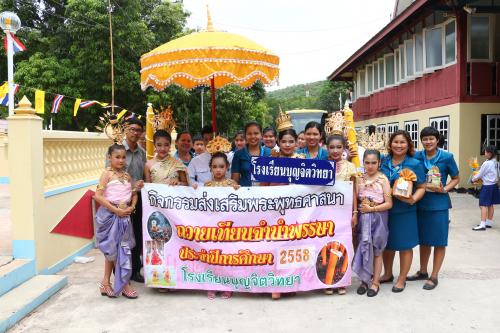 วันอังคารที่ 28 กรกฎาคม 58 โรงเรียนบุญจิตวิทยา จัดกิจกรรมส่งเสริมพระพุทธศาสนา ถวายเทียนจำนำพรรษา ปีการศึกษา 2558