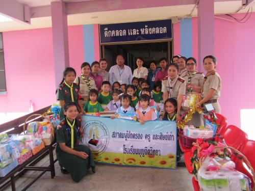 วันพุธที่ 8 สิงหาคม 2557 สมาคมผู้ปกครอง ครู และศิษย์เก่า โรงเรียนบุญจิตวิทยา โดย นายกสมาคม นายสนธยา ตุ๋นเจริญ พร้อมคณะครูและนักเรียน ร่วมนำตะกร้าของขวัญ รับขวัญแม่แรกคลอด ณ รพ.สมเด็จพระบรมราชเทวี ณ ศรีราชา เนื่องในโอกาสวันคล้ายวันพระราชสมภพของ สมเด็จพระนางเจ้าสิริกิติ์พระบรมราชินีนาถ