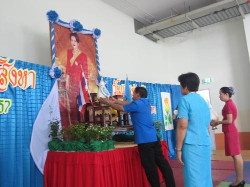 12 ส.ค. 57 อ.สนธยา ตุ๋นเจริญ ที่ปรึกษา/รองผู้อำนวยการ คุณครูทิพย์วรรณ ศิลธรรม หน.งานวิชาการมัธยมฯ คุณครูจุฑาทิพย์ วงศ์ปามุติ ร่วมถวายเครื่องสักการะและจุดเทียนชัยถวายพระพร สมเด็จพระนางเจ้าพระบรมราชินีนาถ เนื่องในวโรกาสวันเฉลิมพระชนมพรรษา ณ ทน.แหลมฉบัง