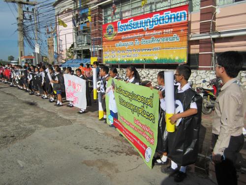 โรงเรียนบุญจิตวิทยา ได้จัดกิจกรรม การรณรงค์วันงดสูบบุหรี่โลก ประจำปีการศึกษา 2557