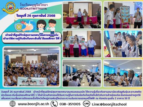 วันพุธที่ 26 กุมภาพันธ์ 2568 เจ้าหน้าที่ศูนย์รักษ์สุขภาพเทศบาลนครแหลมฉบัง ให้ความรู้เกี่ยวกับงานอนามัยเจริญพันธุ์และยาเสพติด นักเรียนระดับชั้นมัธยมศึกษาปีที่ 1