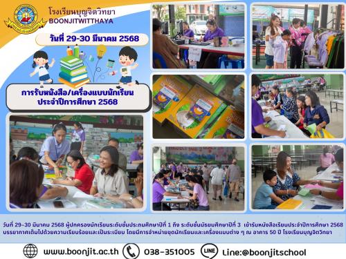 วันที่ 29–30 มีนาคม 2568 ผู้ปกครองนักเรียนระดับชั้นประถมศึกษาปีที่ 1 ถึง ระดับชั้นมัธยมศึกษาปีที่ 3 เข้ารับหนังสือเรียนประจำปีการศึกษา 2568