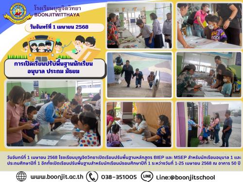 วันจันทร์ที่ 1 เมษายน 2568 โรงเรียนบุญจิตวิทยาเปิดเรียนปรับพื้นฐานหลักสูตร BIEP และ MSEP สำหรับนักเรียนอนุบาล 1 และประถมศึกษาปีที่ 1